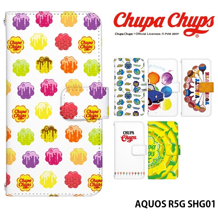 AQUOS R5G SHG01 ケース shg01 カバー 手帳型 スマホケース アクオスR5g デザイン Chupa Chups チュッパチャプス かわいい おしゃれ