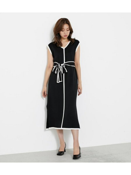 rienda(リエンダ)トリミングラインKnit OP今期トレンドのライン使いが可愛いIラインワンピ。